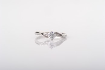 Form: Ring of silvery metal set with a white diamond.